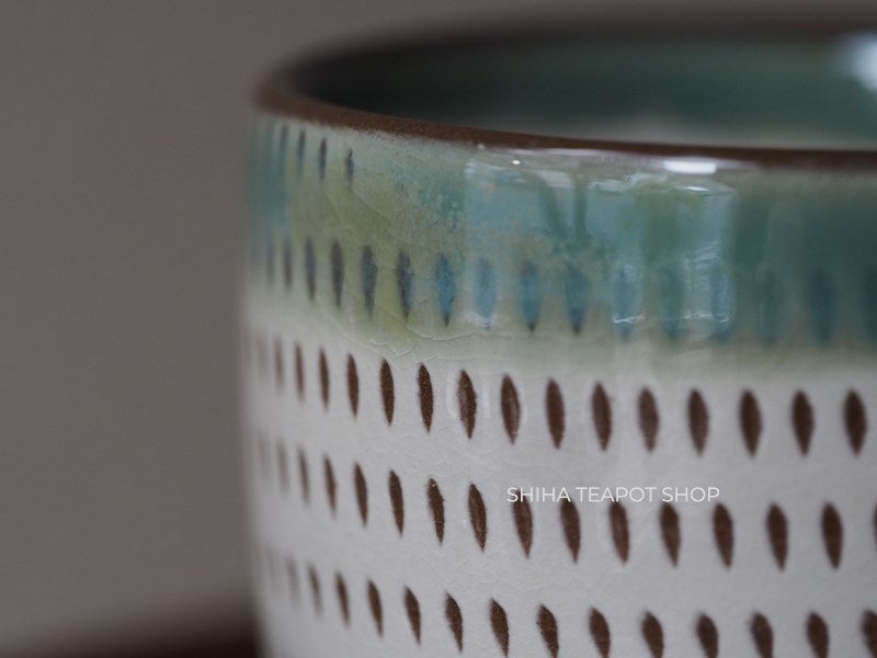 Koishiwara-yaki pair cups (140ml) - typical koishiwara style with whole suface cut design with milky green galze. (diameter 6.5-6.7cm)