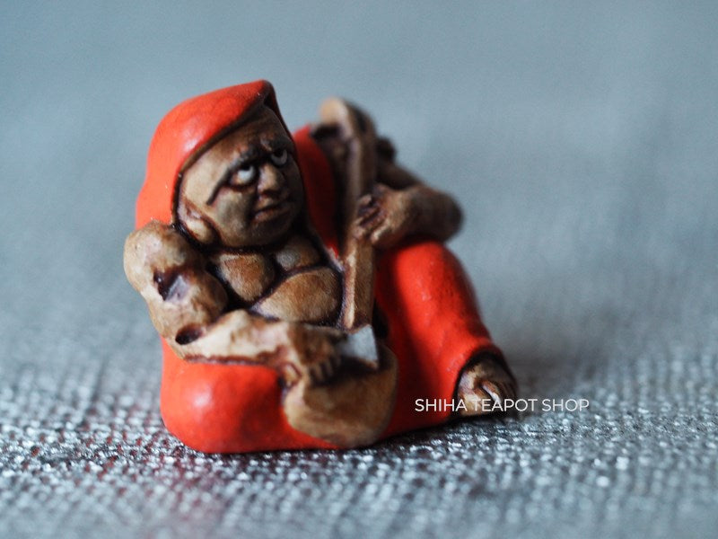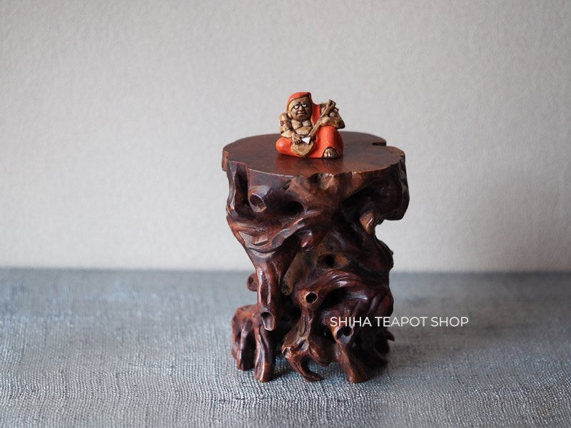 This Daruma doll, while capturing the original dignity and strength of Daruma, playfully portrays him playing a string instrument. Crafted by a doll artist in decades ago, it has a charming presence that makes it a delightful addition to a tea shelf or tea table.