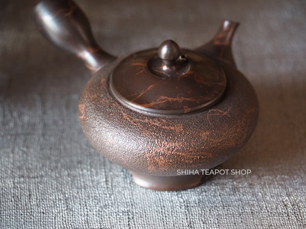 KOSHIN Black Red Marble Seaweed Flat Tokoname Kyusu Teapot (Iron Teapot texture) 香臣極平大理石 KS2