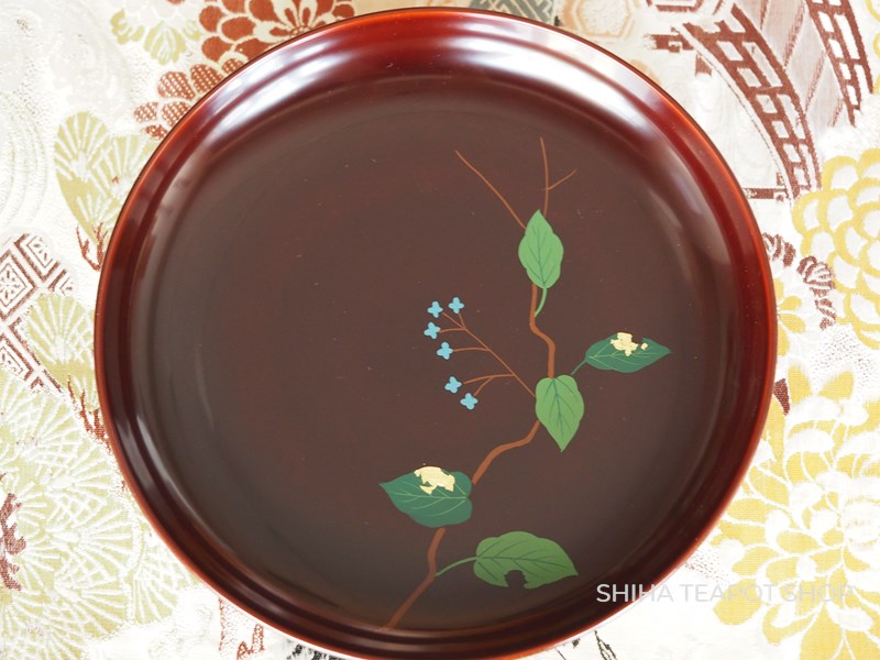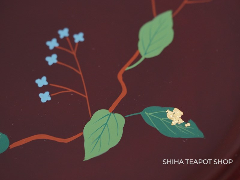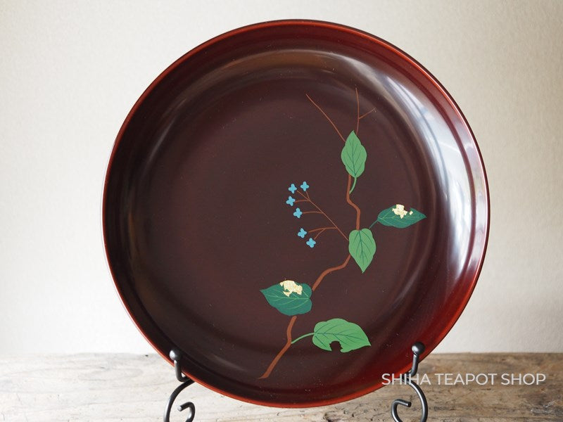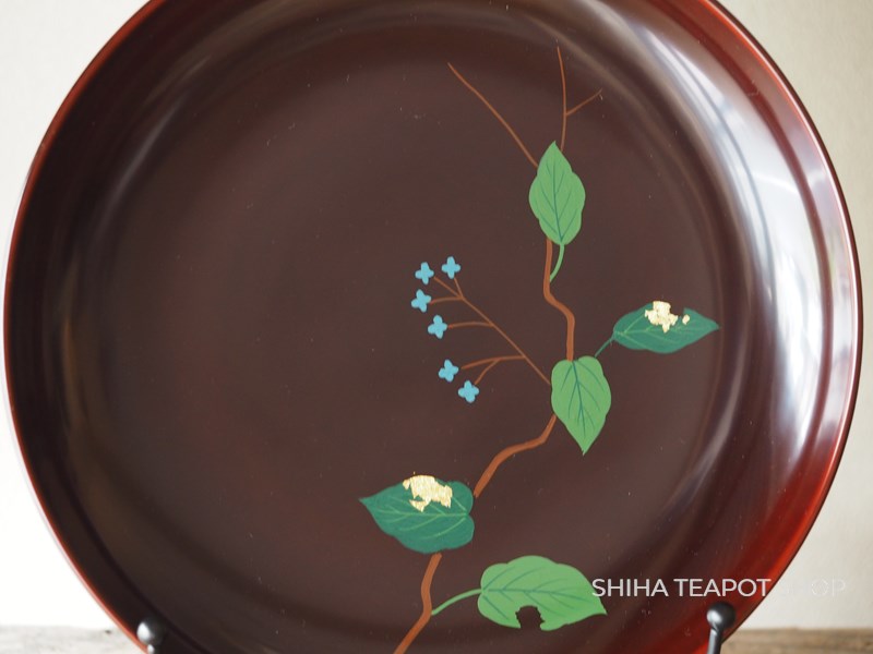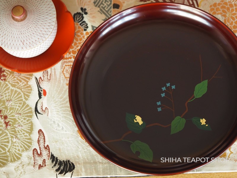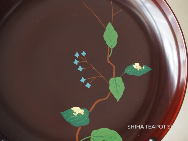 Yamanaka Urushi Lacquer Plate Sweets Tray Leaf & Flower (Tame-nuri) PL78