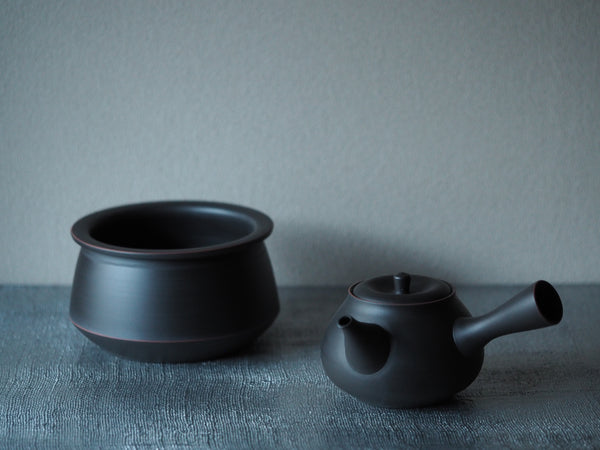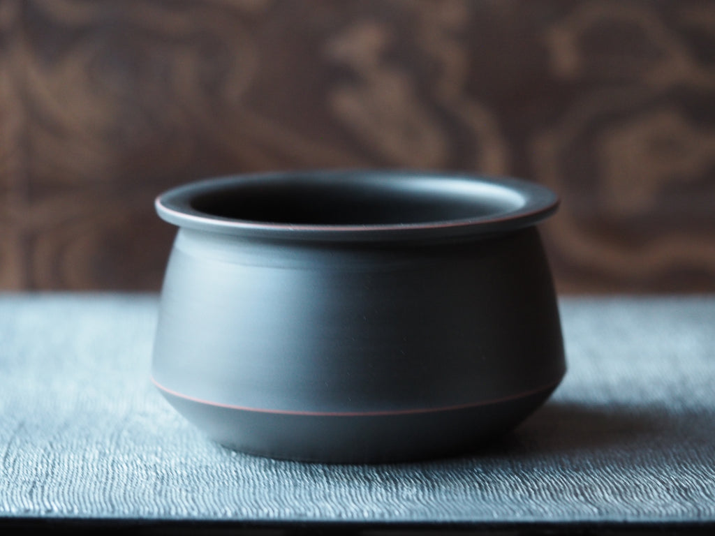 Reiko Black Silky texture Water Drain Bowl Tea-Pond  鯉江廣朱泥熏黑建水水盂