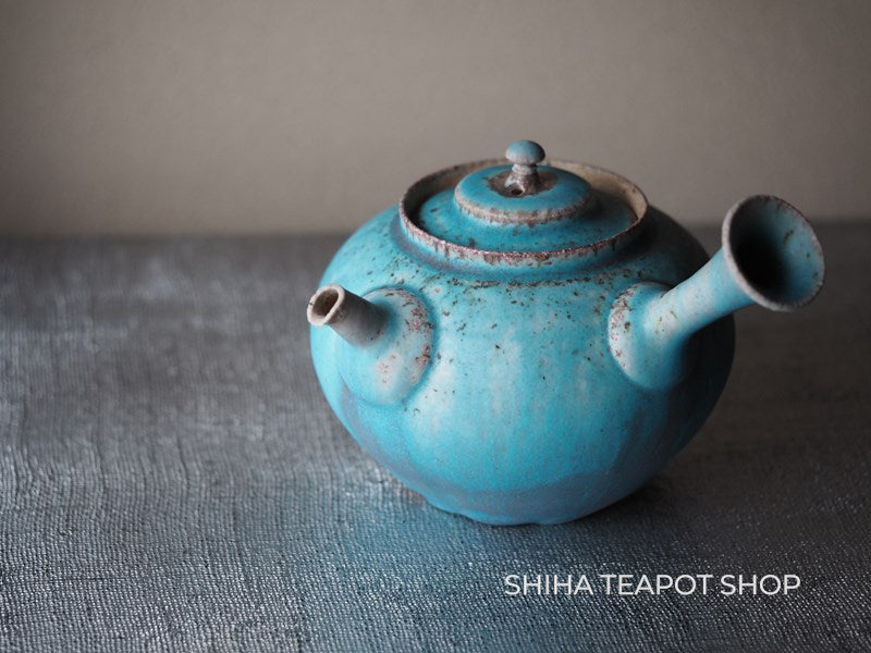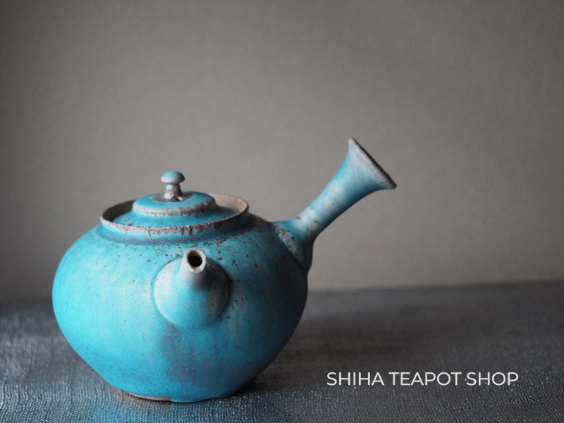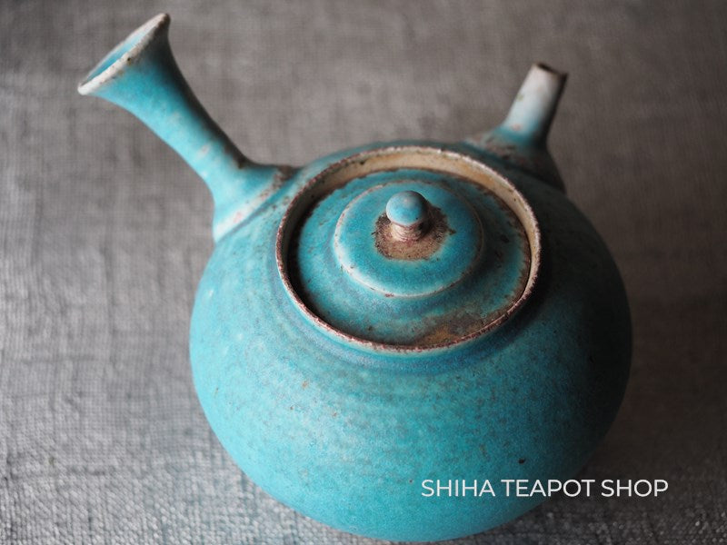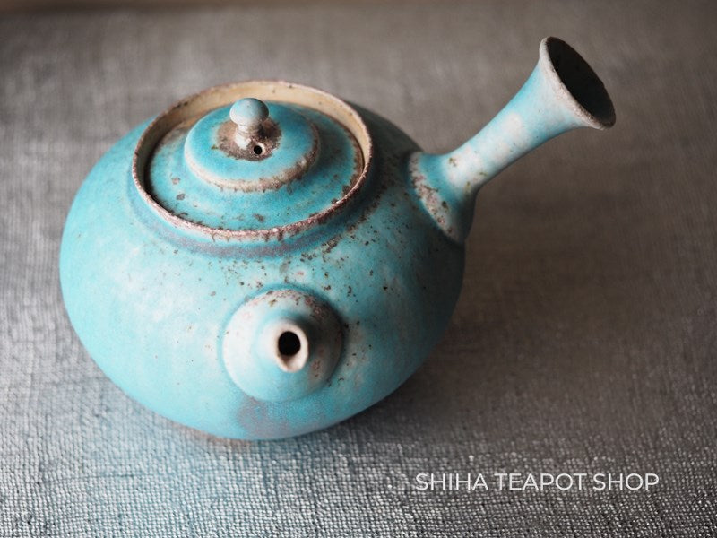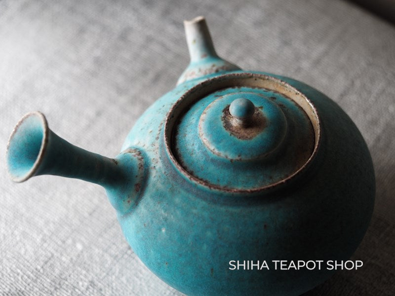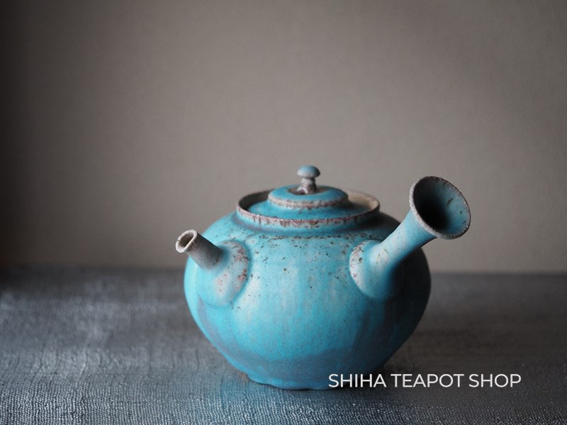 Yamada Sou Wood fired large blue Kyusu Teapot 山田想 YS25