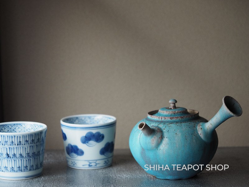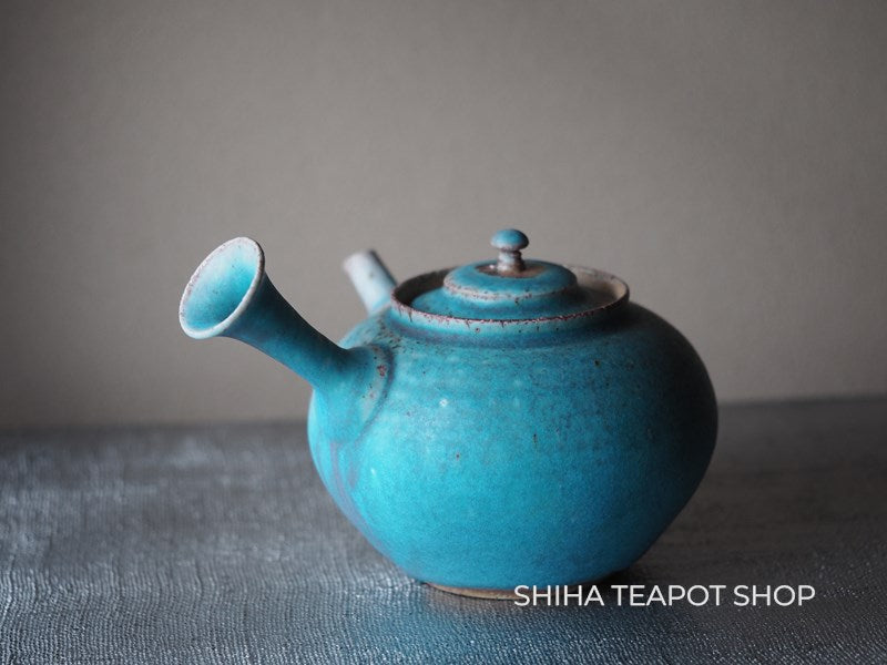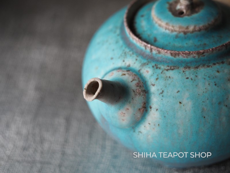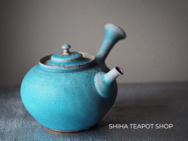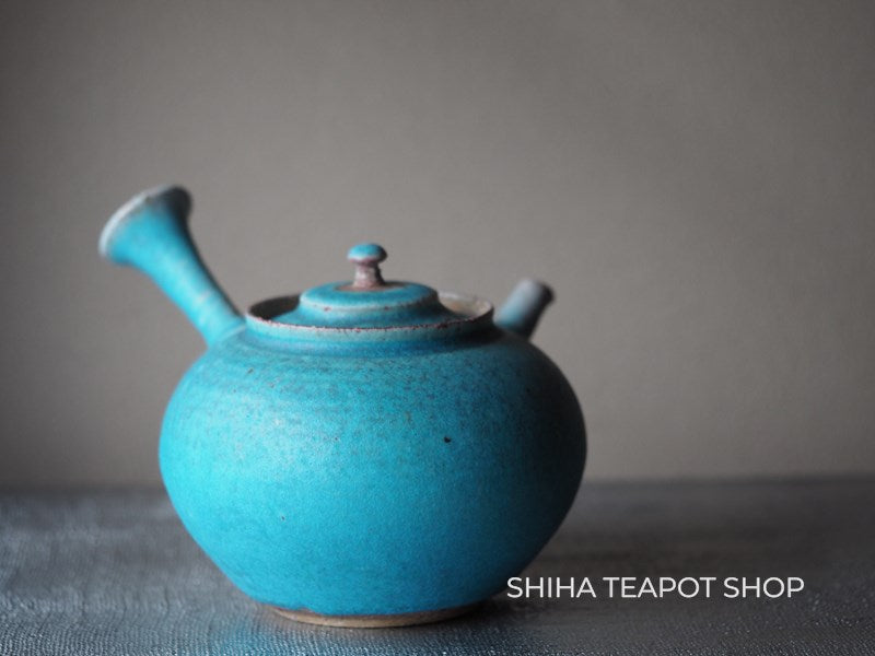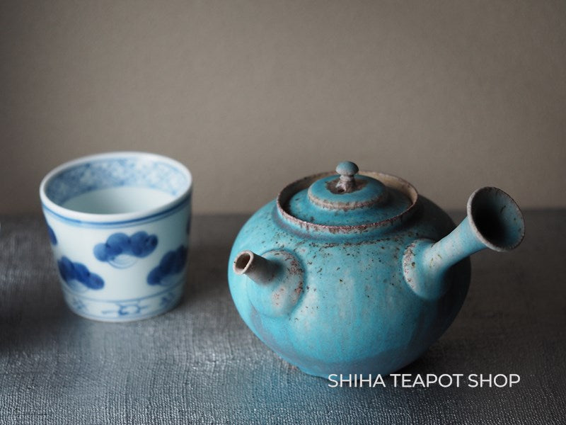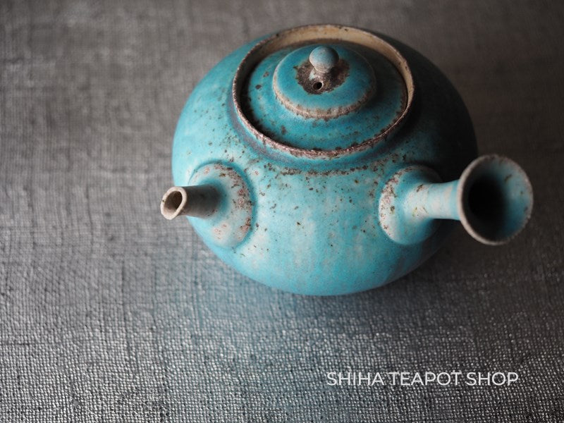 Yamada Sou Wood fired large blue Kyusu Teapot 山田想 YS25
