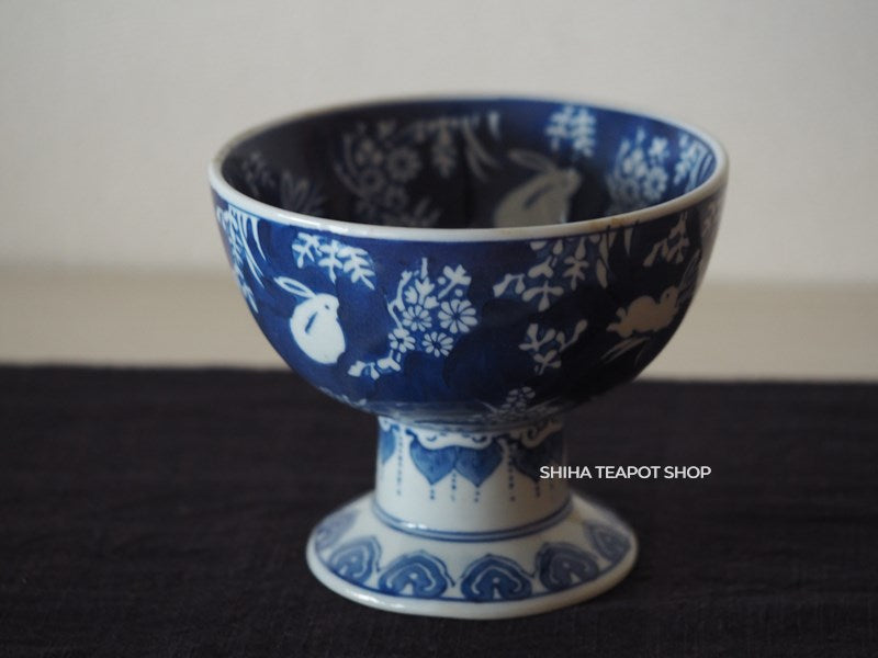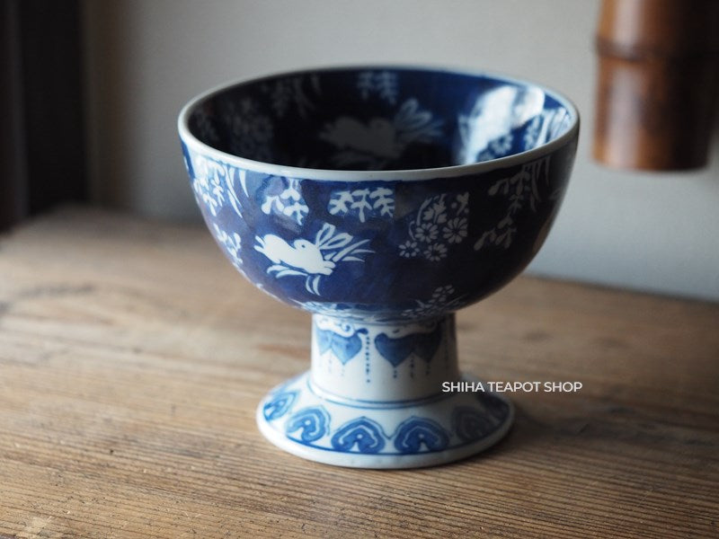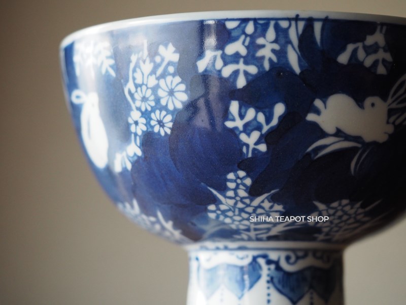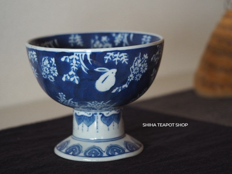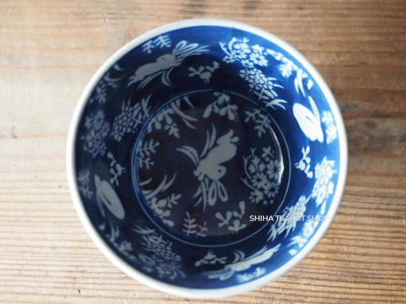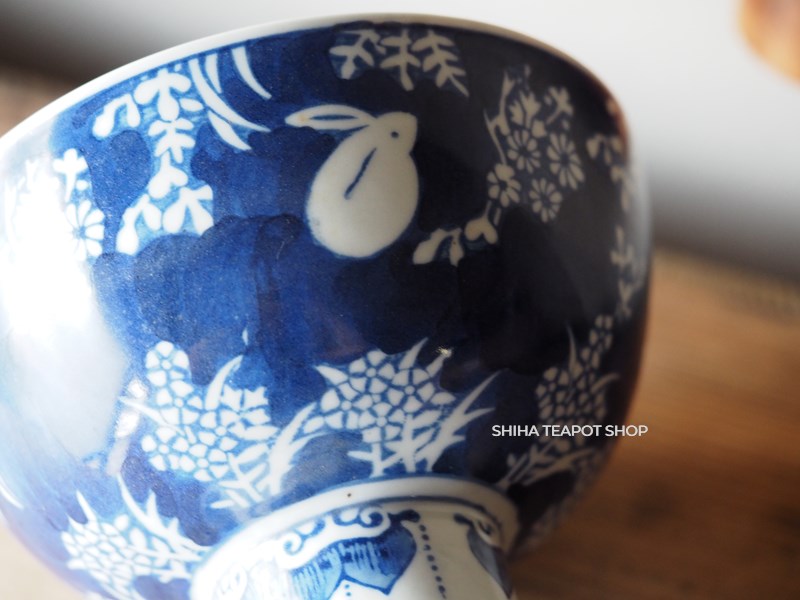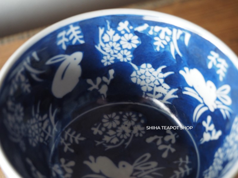 Vintage: Haisen-  Blue and White Porcelain Wash Bowl White Rabbit