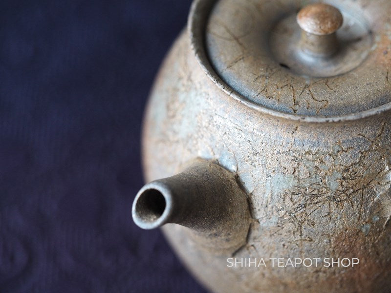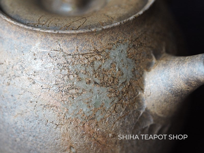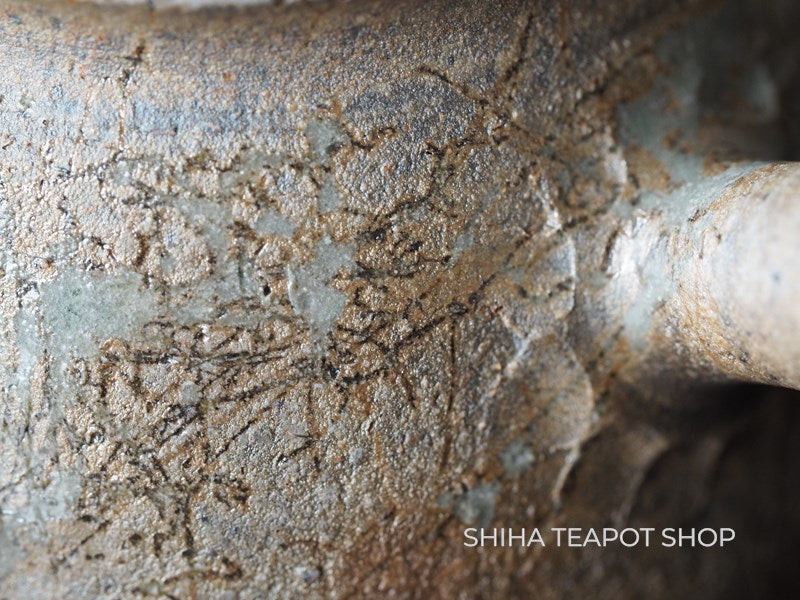 Surface of the body is "textured" - it look so natural and feels of clay is simple. This texture is called "Nanban" in Japanese. Master Yokei's very high technique  can make this texture. He only used right hand (no support of left hand) to form the shape.
