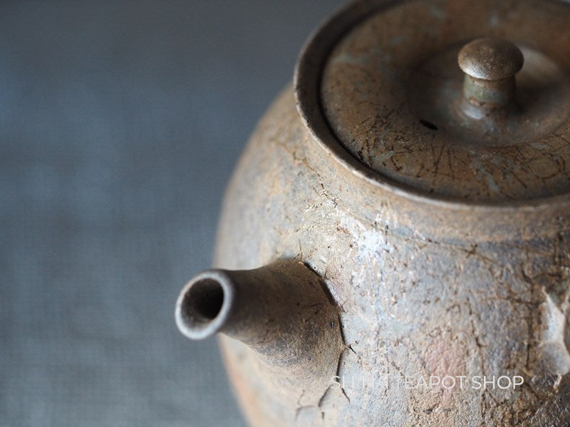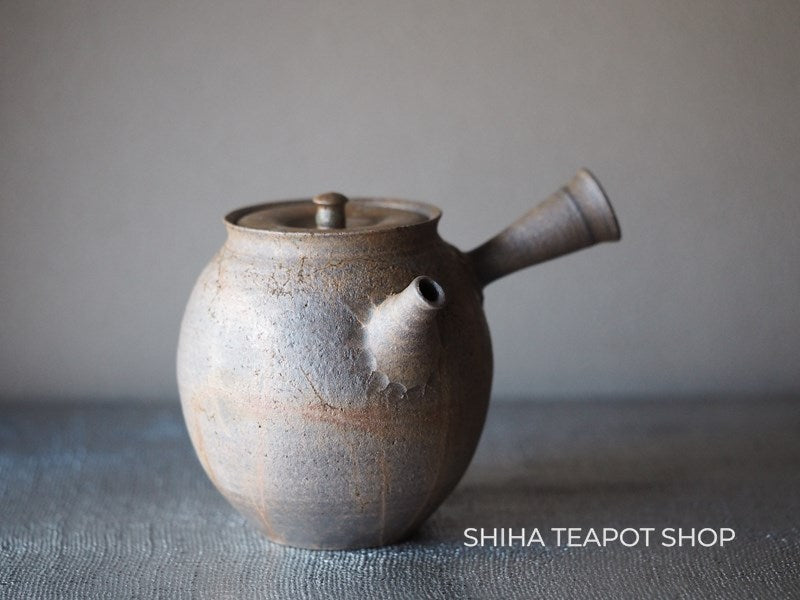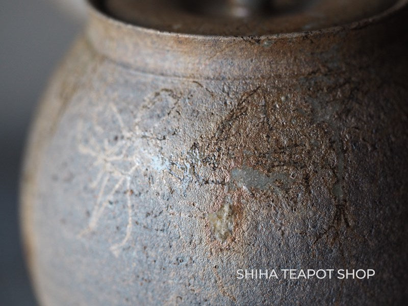 Surface of the body is "textured" - it look so natural and feels of clay is simple. This texture is called "Nanban" in Japanese. Master Yokei's very high technique  can make this texture. He only used right hand (no support of left hand) to form the shape.