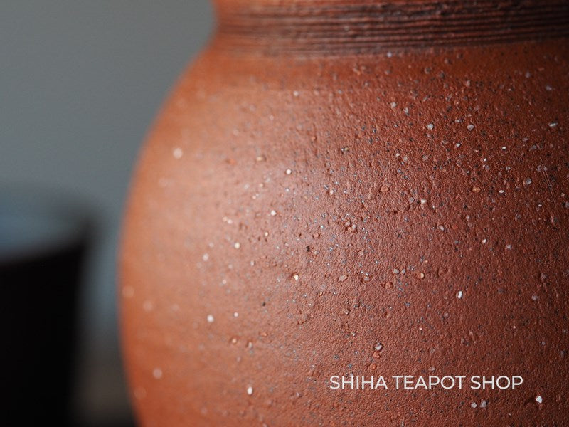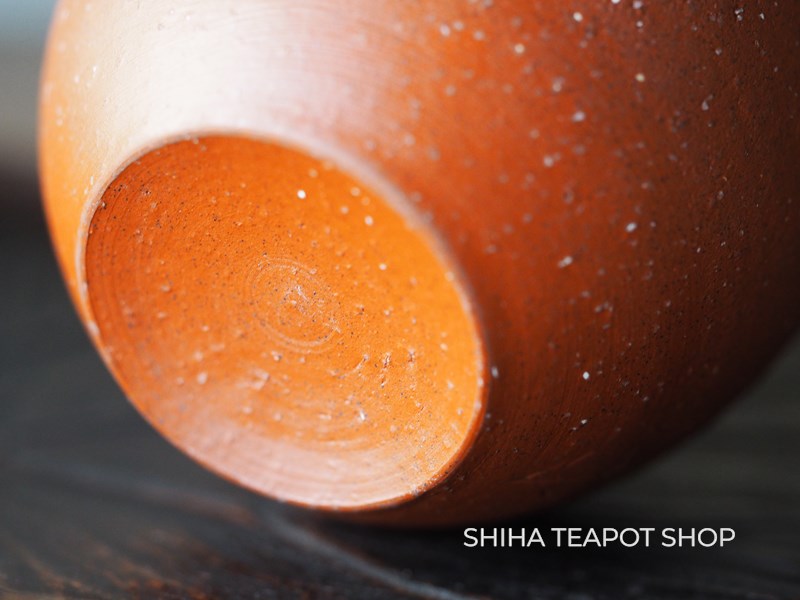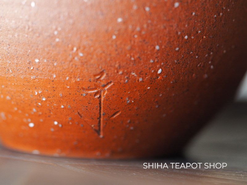 The artist used 2 kind of soil, one is red clay(朱泥), the other is mountain sand (山砂)which is shown like white dot. No glazing.