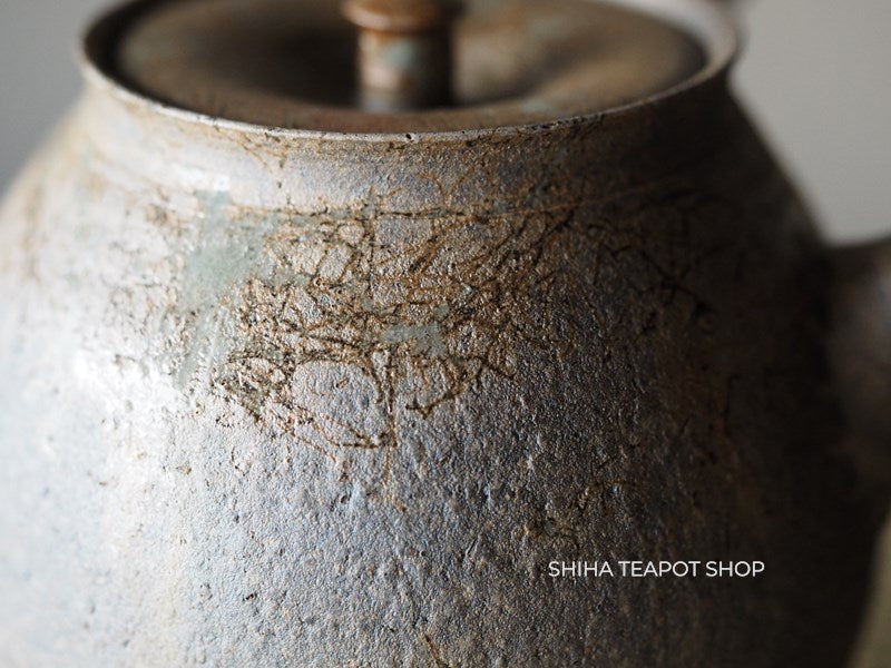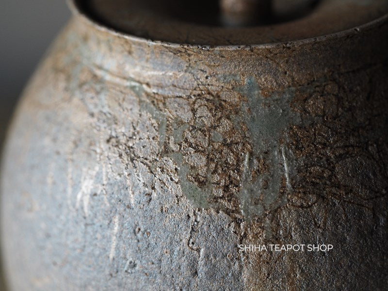 Surface of the body is "textured" - it look so natural and feels of clay is simple. This texture is called "Nanban" in Japanese. Master Yokei's very high technique can make this texture. He only used right hand (no support of left hand) to form the shape.