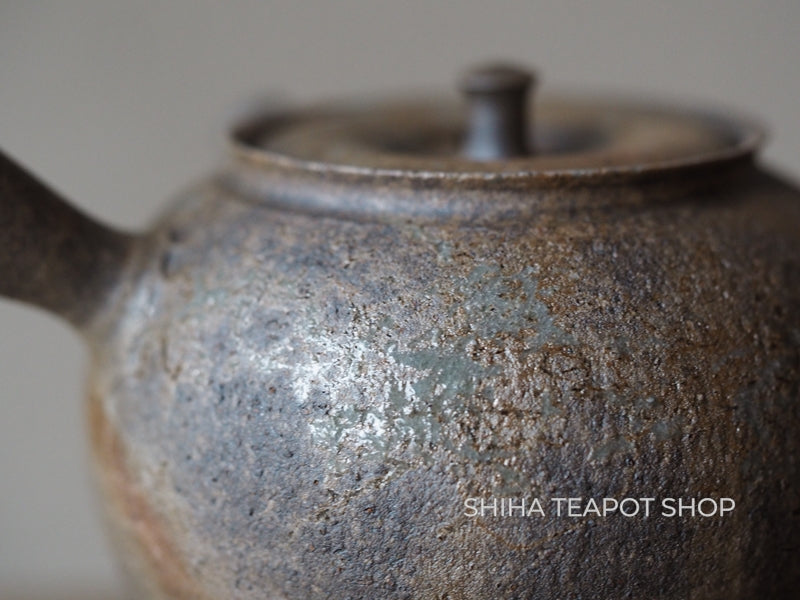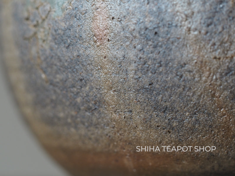 Surface of the body is "textured" - it look so natural and feels of clay is simple. This texture is called "Nanban" in Japanese. Master Yokei's very high technique  can make this texture. He only used right hand (no support of left hand) to form the shape.